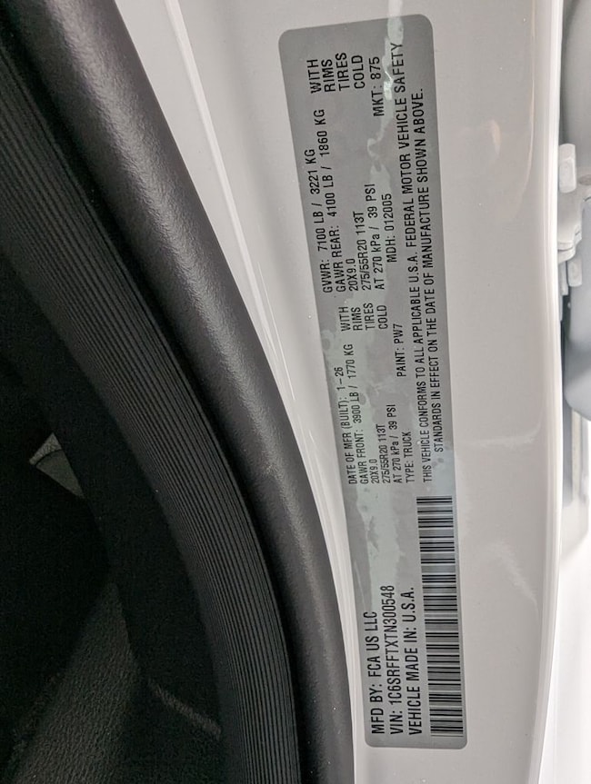 - VIN : 1C6SRFFTXTN300548