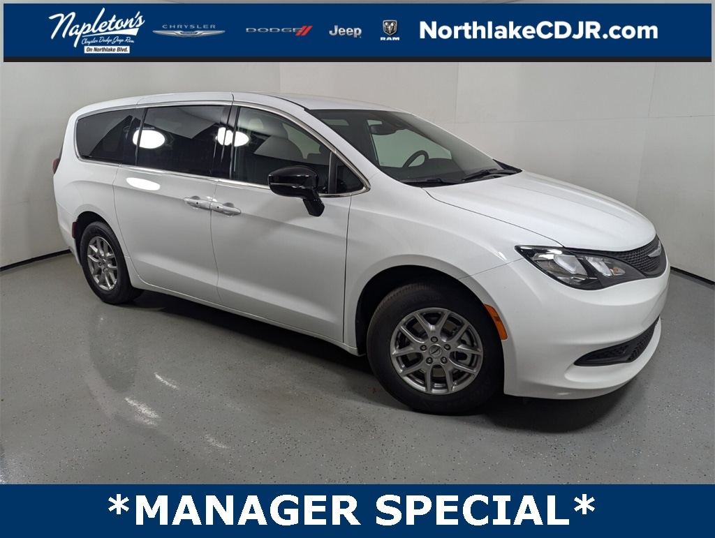 This Voyager is well equipped with Quick Order Package 27E, 17" x 7" Aluminum Wheels, 3.25 Axle Ratio, 3rd row seats: split-bench, 4-Wheel Disc Brakes, 6 Speakers, ABS brakes, Air Conditioning, Alloy wheels, AM/FM radio: SiriusXM, Apple CarPlay/Android Auto, Automatic temperature control, Black Seats, Brake assist, Bumpers: body-color, Caprice Leatherette Bucket Seats, Compass, Delay-off headlights, Driver door bin, Driver vanity mirror, Driver's Seat Mounted Armrest, Dual front impact airbags, Dual front side impact airbags, Electronic Stability Control, Emergency communication system: Chrysler Connect, Four wheel independent suspension, Front anti-roll bar, Front Bucket Seats, Front dual zone A/C, Front reading lights, Fully automatic headlights, Heated door mirrors, Heated front seats, Heated steering wheel, Illuminated entry, Knee airbag, Low tire pressure warning, Occupant sensing airbag, Outside temperature display, Overhead airbag, Overhead console, Panic alarm, ParkView Rear Back-Up Camera, Passenger door bin, Passenger seat mounted armrest, Passenger vanity mirror, Power door mirrors, Power driver seat, Power Liftgate, Power steering, Power windows, Radio data system, Radio: Uconnect 5 w/10.1" Display, Rain sensing wipers, Rear air conditioning, Rear window defroster, Rear window wiper, Reclining 3rd row seat, Remote keyless entry, Security system, Speed control, Split folding rear seat, Spoiler, Steering wheel mounted audio controls, Tachometer, Telescoping steering wheel, Tilt steering wheel, Touring Suspension, Traction control, Trip computer, Turn signal indicator mirrors, Variably intermittent wipers, and Voltmeter. Price includes: Not all customers qualify for all rebates. See dealer for details.$3500 - 2025 National Retail Bonus Cash . Exp. 11/03/2025