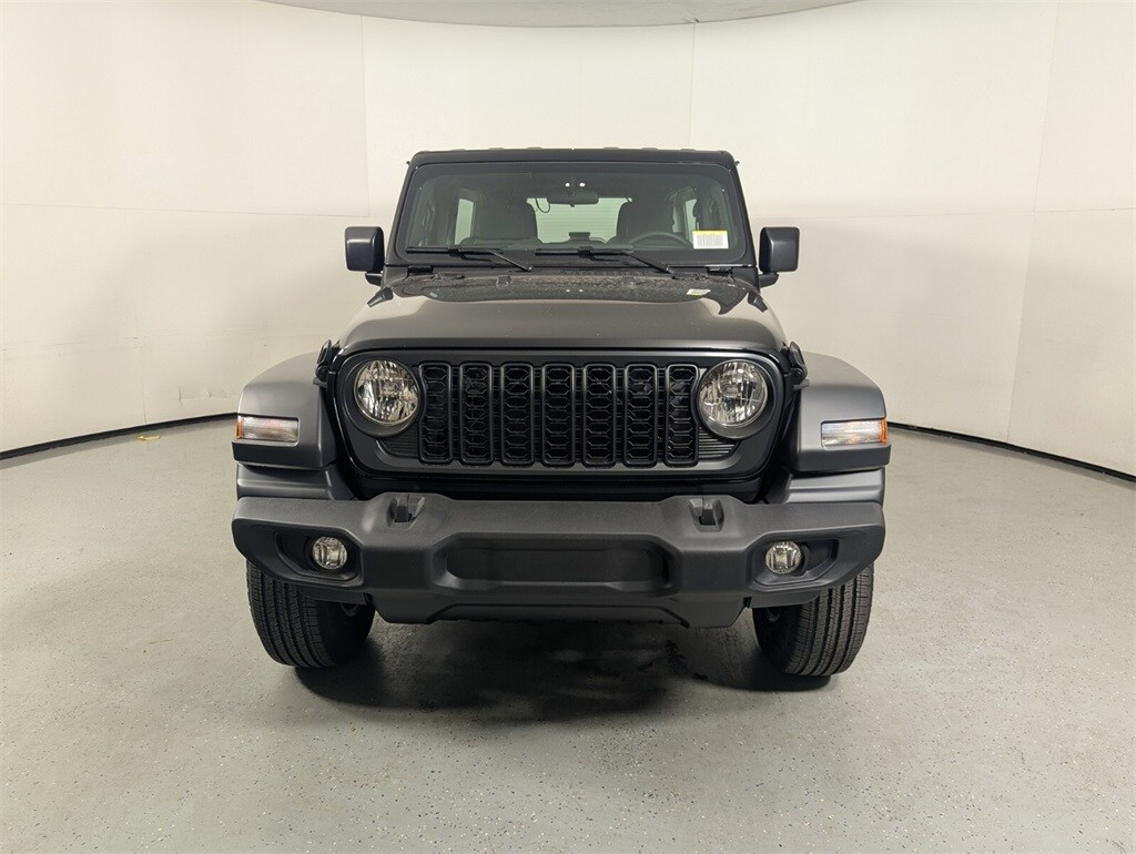 This Wrangler is well equipped with Quick Order Package 22B Sport, Quick Order Package 23B Sport, 12.3" Touchscreen Display, 3.45 Overall Top Gear Ratio, 4-Wheel Disc Brakes, 4G LTE Wi-Fi Hot Spot, 8 Speakers, ABS brakes, Air Conditioning, AM/FM radio: SiriusXM with 360L, Apple CarPlay, Apple CarPlay/Android Auto, Aux Battery, Black 3-Piece Hard Top, Brake assist, Cloth Low-Back Bucket Seats, Compass, Connectivity - US/Canada, Delay-off headlights, Driver door bin, Driver vanity mirror, Dual front impact airbags, Dual front side impact airbags, Electronic Stability Control, For More Info, Call 800-643-2112, Freedom Panel Storage Bag, Front anti-roll bar, Front Bucket Seats, Front Center Armrest w/Storage, Front fog lights, Front reading lights, Google Android Auto, Illuminated entry, Integrated Center Stack Radio, Integrated roll-over protection, Low tire pressure warning, MOPAR All-Weather Floor Mats, Myflexcare Service Plan, Non-Lock Fuel Cap Without Discriminator, Normal Duty Suspension, Occupant sensing airbag, Outside temperature display, Overhead airbag, Panic alarm, ParkView Rear Back-Up Camera, Passenger door bin, Passenger vanity mirror, Power steering, Power windows, Radio data system, Radio: Uconnect 5 with 12.3" Display, Rear anti-roll bar, Rear reading lights, Rear Window Defroster, Rear Window Wiper/Washer, Remote keyless entry, SiriusXM Radio Service, SiriusXM with 360L, Speed control, Split folding rear seat, Steering wheel mounted audio controls, Stop-Start Dual Battery System, Tachometer, Telescoping steering wheel, Tilt steering wheel, Traction control, Trip computer, Variably intermittent wipers, Wheels: 17" x 7.5" Black Steel Styled, and Wheels: 17" x 7.5" Gray.