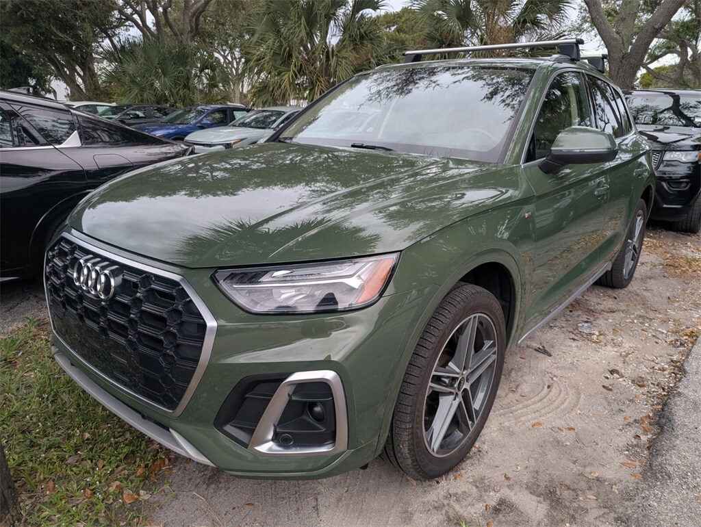 2022 Audi Q5 e 55 Premium Plus S Line Beautifully finished in District Green Metallic with Rock Gray Leather interior. 2.0L Turbocharged 4D Sport Utility quattro 7-Speed Automatic S tronic **ONE OWNER**, **LOCAL TRADE**, **CLEAN CARFAX**, **MUST SEE TO APPRECIATE**, **EXTRA CLEAN**, 10 Speakers, 4-Wheel Disc Brakes, ABS brakes, Air Conditioning, Alloy wheels, AM/FM radio, Audi smartphone interface (Apple CarPlay/Android Auto), Auto High-beam Headlights, Auto-dimming Rear-View mirror, Automatic temperature control, Axle Ratio: 5.30, Brake assist, Bumpers: body-color, Compass, Delay-off headlights, Driver door bin, Driver vanity mirror, Dual front impact airbags, Dual front side impact airbags, Electronic Stability Control, Emergency communication system: Audi connect CARE, Exterior Parking Camera Rear, Four wheel independent suspension, Front anti-roll bar, Front Bucket Seats, Front Center Armrest, Front dual zone A/C, Front fog lights, Front reading lights, Garage door transmitter: HomeLink, Genuine wood console insert, Genuine wood dashboard insert, Genuine wood door panel insert, Heated 8-Way Power Front Seats, Heated door mirrors, Heated front seats, Illuminated entry, Leather Seating Surfaces, Leather Shift Knob, Low tire pressure warning, Occupant sensing airbag, Outside temperature display, Overhead airbag, Overhead console, Panic alarm, Passenger door bin, Passenger vanity mirror, Power door mirrors, Power driver seat, Power Liftgate, Power passenger seat, Power steering, Power windows, Radio data system, Radio: Audi Sound System, Rain sensing wipers, Rear air conditioning, Rear anti-roll bar, Rear fog lights, Rear reading lights, Rear seat center armrest, Rear window defroster, Rear window wiper, Remote keyless entry, Roof rack, Security system, Speed control, Speed-sensing steering, Speed-Sensitive Wipers, Split folding rear seat, Spoiler, Sport steering wheel, Steering wheel mounted audio controls, Tachometer, Telescoping steering wheel, Tilt steering wheel, Traction control, Trip computer, Turn signal indicator mirrors, Variably intermittent wipers, Wheels: 19" 5-Double-Spoke-Star Design. CARFAX One-Owner. Clean CARFAX. Priced below KBB Fair Purchase Price!