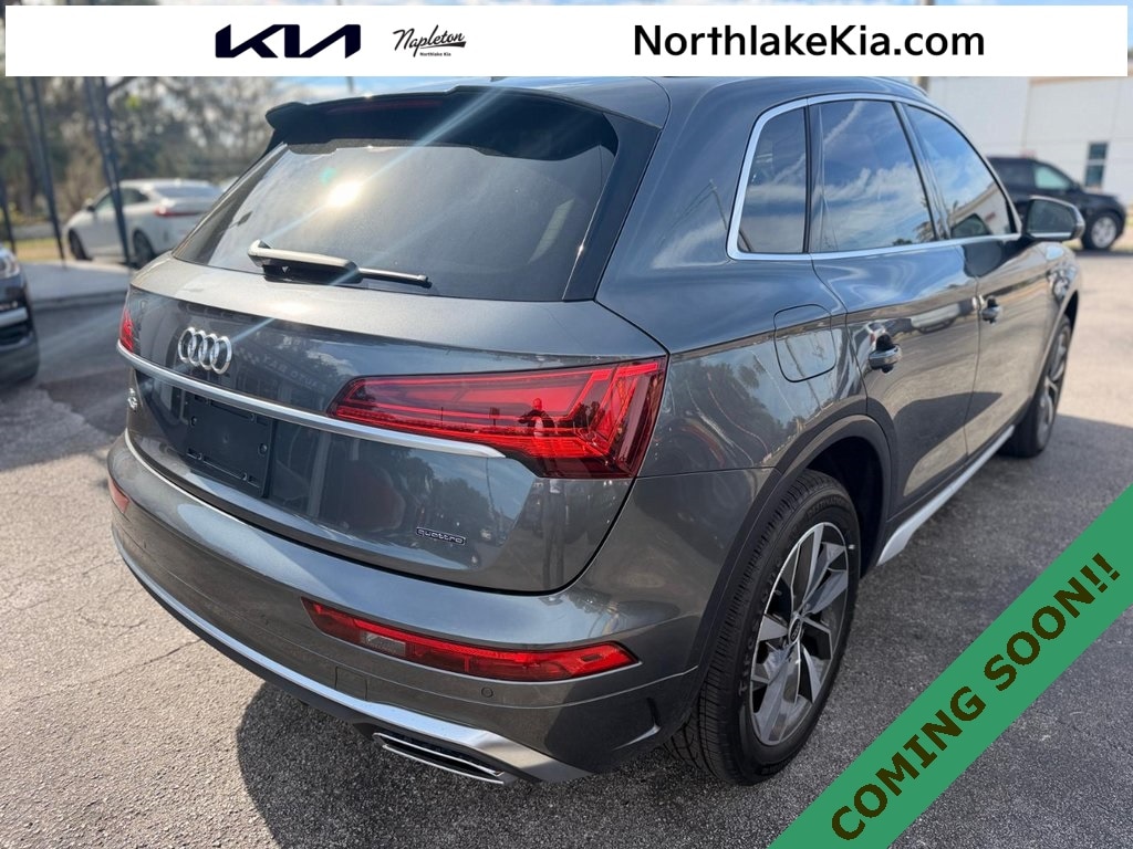 2023 Audi Q5 45 S line Premium quattro Beautifully finished in Chronos Gray Metallic with Rock Gray Leather interior. 2.0L Turbocharged 4D Sport Utility quattro 7-Speed Automatic S tronic **ONE OWNER**, Rock Gray w/Leather Seating Surfaces, 10 Speakers, 4-Wheel Disc Brakes, 5.302 Axle Ratio, ABS brakes, Air Conditioning, Alloy wheels, AM/FM radio, Auto-dimming Rear-View mirror, Automatic temperature control, Brake assist, Bumpers: body-color, Compass, Delay-off headlights, Driver door bin, Driver vanity mirror, Dual front impact airbags, Dual front side impact airbags, Electronic Stability Control, Emergency communication system: Audi connect CARE, Exterior Parking Camera Rear, Four wheel independent suspension, Front anti-roll bar, Front Bucket Seats, Front Center Armrest, Front dual zone A/C, Front fog lights, Front reading lights, Garage door transmitter: HomeLink, Genuine wood console insert, Genuine wood dashboard insert, Genuine wood door panel insert, Heated 8-Way Power Front Bucket Seats, Heated door mirrors, Heated front seats, Illuminated entry, Leather Seating Surfaces, Leather Shift Knob, Low tire pressure warning, Occupant sensing airbag, Outside temperature display, Overhead airbag, Overhead console, Panic alarm, Passenger door bin, Passenger vanity mirror, Power door mirrors, Power driver seat, Power Liftgate, Power passenger seat, Power steering, Power windows, Radio data system, Radio: Audi Sound System, Rain sensing wipers, Rear air conditioning, Rear anti-roll bar, Rear fog lights, Rear reading lights, Rear seat center armrest, Rear window defroster, Rear window wiper, Remote keyless entry, Roof rack, Security system, Speed control, Speed-sensing steering, Speed-Sensitive Wipers, Split folding rear seat, Spoiler, Steering wheel mounted audio controls, Tachometer, Telescoping steering wheel, Tilt steering wheel, Traction control, Trip computer, Turn signal indicator mirrors, Variably intermittent wipers, Wheels: 18" 5-Arm-Turbine Design, Rock Gray w/Leather Seating Surfaces. CARFAX One-Owner. 22/29 City/Highway MPG