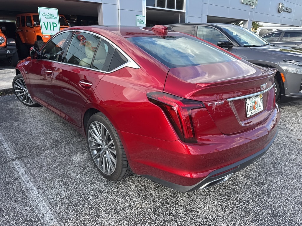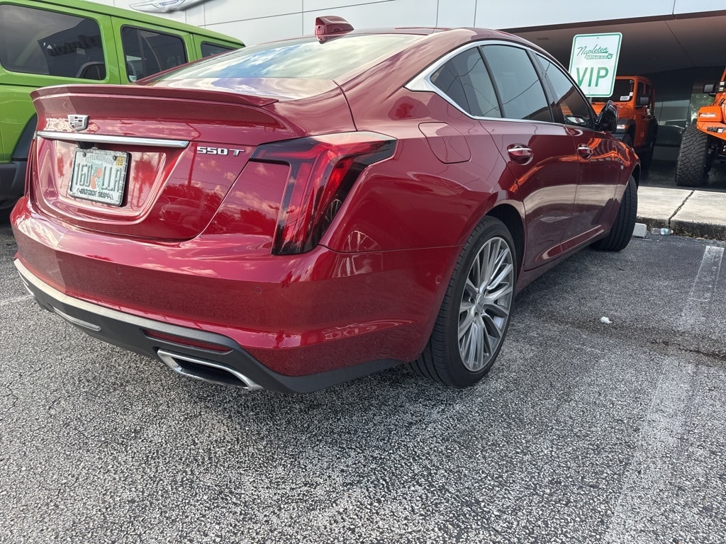 This CT5 is well equipped with Interior Protection Package (LPO) (All-Weather Cargo Mat (LPO) and All-Weather Floor Mats), Preferred Equipment Group 1SD (LED Reflective Windshield Collision Alert), Technology Package (Adaptive Forward Lighting Headlamps, Air Quality Indicator Sensor, Automatic Leveling System Headlamp Control, Body-Color Heated Power-Adjustable Outside Mirrors, Digital Rear Camera Mirror w/Tilt & Zoom Function, Front Cornering LED Lamps, Hands-Free Decklid Release, Head-Up Display, Illuminating Front Sill Plates, Pollutant/Odor/Fine Dust Air Filter, and Premium Headlamp System), 15 Speakers, 4-Wheel Disc Brakes, 8-Way Power Driver Seat Adjuster, 8-Way Power Front Passenger Seat Adjuster, ABS brakes, Air Conditioning, AKG 15-Speaker System, Alloy wheels, AM/FM radio: SiriusXM with 360L, Apple CarPlay/Android Auto, Auto High-beam Headlights, Auto-dimming door mirrors, Auto-dimming Rear-View mirror, Automatic Stop/Start w/Disable, Automatic temperature control, Brake assist, Bumpers: body-color, Compass, Delay-off headlights, Driver 4-Way Power Lumbar Seat Adjuster, Driver door bin, Driver Power Lumbar Massage Seat, Driver Power Seatback Bolster Adjustment, Driver vanity mirror, Dual front impact airbags, Dual front side impact airbags, Electronic Stability Control, Emergency communication system: OnStar and Cadillac connected services capable, Enhanced Automatic Parking Assist, Four wheel independent suspension, Front anti-roll bar, Front Bucket Seats, Front Center Armrest, Front dual zone A/C, Front Passenger 4-Way Power Lumbar Seat Adjuster, Front Passenger Power Lumbar Massage Seat, Front Passenger Power Seatback Bolster Adjustment, Front reading lights, Fully automatic headlights, Garage door transmitter, HD Surround Vision, Heated door mirrors, Heated Driver & Front Passenger Seats, Heated front seats, Heated steering wheel, Illuminated entry, Knee airbag, Leather Seating Surfaces w/Mini-Perforated Inserts, Leather steering wheel, Low tire pressure warning, Memory seat, Navigation System/ GPS, Occupant sensing airbag, Outside temperature display, Overhead airbag, Overhead console, Panic alarm, Passenger door bin, Passenger vanity mirror, Power door mirrors, Power driver seat, Power passenger seat, Power steering, Power windows, Radio data system, Radio: Google Built-In Infotainment Experience, Rain sensing wipers, Rear anti-roll bar, Rear reading lights, Rear seat center armrest, Rear Spoiler, Rear window defroster, Remote keyless entry, SiriusXM w/360L Trial Subscription, Speed control, Speed-sensing steering, Split folding rear seat, Steering wheel memory, Steering wheel mounted audio controls, Tachometer, Telescoping steering wheel, Tilt steering wheel, Traction control, Trip computer, Turn signal indicator mirrors, Variably intermittent wipers, Ventilated Driver & Front Passenger Seats, Ventilated front seats, Voltmeter, Wheels: 18" Premium Painted Alloy, and Wheels: 19" Alloy w/Diamond Cut/Midnight Silver.