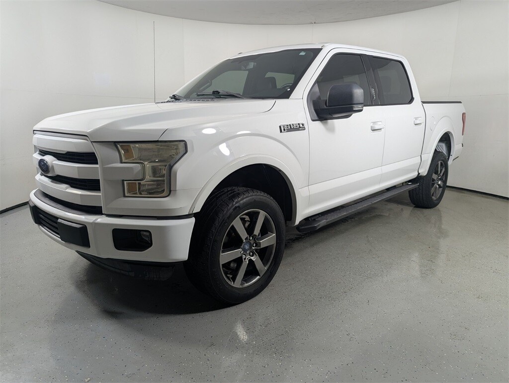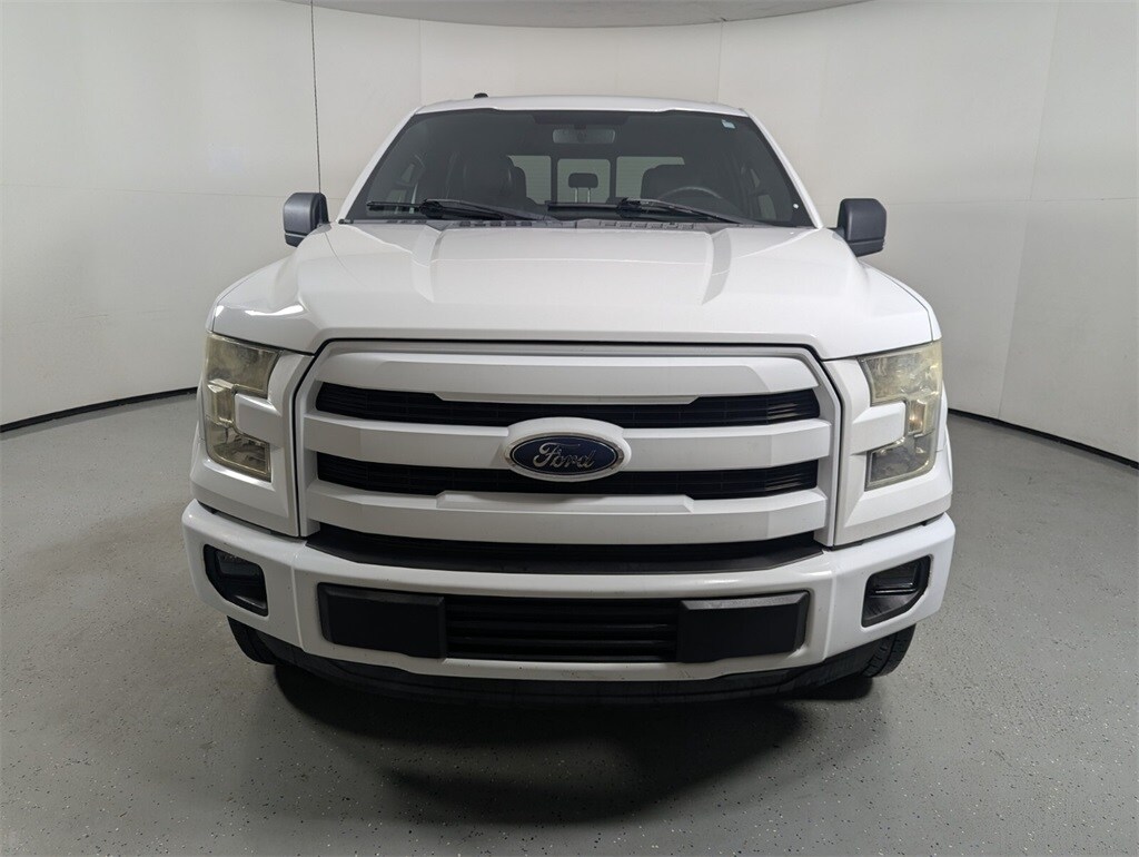 2015 Ford F-150 XLT Beautifully finished in Oxford White with Black Cloth interior. 5.0L V8 FFV 4D SuperCrew RWD 6-Speed Automatic Electronic 110V/400W Outlet, 4-Wheel Disc Brakes, 4.2" Productivity Screen in Instrument Cluster, 6 Speakers, 8-Way Power Driver's Seat, ABS brakes, Accent-Color Step Bars, Air Conditioning, Alloy wheels, AM/FM radio, Auto-Dimming Rear-View Mirror, Auxiliary Transmission Oil Cooler, Black Billet Style Grille w/Body-Color Surround, Body-Color Door & Tailgate Handles, Body-Color Front & Rear Bumpers, Box Side Decal, Brake assist, Bumpers: chrome, CD player, Chrome Billet Style Grille w/Chrome Surround, Chrome Door & Tailgate Handles w/Body-Color Bezel, Chrome Step Bars, Class IV Trailer Hitch Receiver, Cloth 40/20/40 Split Front Seat, Compass, Delay-off headlights, Driver door bin, Driver vanity mirror, Dual front impact airbags, Dual front side impact airbags, Electronic Stability Control, Equipment Group 302A Luxury, Front anti-roll bar, Front Center Armrest w/Storage, Front fog lights, Front License Plate Bracket, Front reading lights, Front wheel independent suspension, Fully automatic headlights, Heated Front Seats, Illuminated entry, Leather-Wrapped Steering Wheel, LED Box Lighting, Low tire pressure warning, Occupant sensing airbag, Outside temperature display, Overhead airbag, Panic alarm, Passenger door bin, Passenger vanity mirror, Power door mirrors, Power Driver/Passenger Lumbar, Power Glass Heated Sideview Mirrors, Power steering, Power windows, Power-Adjustable Pedals, Power-Sliding Rear Window, Radio data system, Radio: AM/FM Stereo/Single-CD Player, Radio: Single-CD w/SiriusXM Satellite, Rear reading lights, Rear step bumper, Rear Under-Seat Storage, Rear View Camera w/Dynamic Hitch Assist, Rear Window Defroster, Remote keyless entry, Remote Start System, Reverse Sensing System, Security system, Single-Tip Chrome Exhaust, Speed control, Speed-sensing steering, Split folding rear seat, Steering wheel mounted audio controls, SYNC Voice Recognition Communications, SYNC with MyFord Touch, Tachometer, Telescoping steering wheel, Tilt steering wheel, Traction control, Trailer Tow Package, Unique Sport Cloth 40/Console/40 Front-Seats, Upgraded Front Stabilizer Bar, Variably intermittent wipers, Voltmeter, Wheels: 17" Silver Painted Aluminum, Wheels: 18" 6-Spoke Machined-Aluminum, Wheels: 18" Chrome-Like PVD, XLT Chrome Appearance Package, XLT Sport Appearance Package.