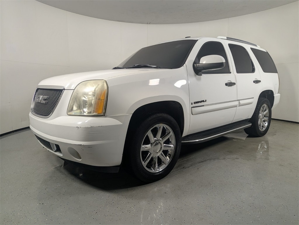 2007 GMC Yukon Denali Beautifully finished in Summit White with Ebony Cloth interior. Vortec 6.2L V8 SFI VVT 4D Sport Utility AWD 6-Speed Automatic HD Electronic with Overdrive **LOCAL TRADE**, **HEATED SEATS**, AWD, 10 Speakers, 18" x 8" Polished Aluminum Wheels, 2nd Row Bench Power Seat Release, 3.42 Rear Axle Ratio, 3rd row seats: split-bench, 4-Wheel Disc Brakes, ABS brakes, Adjustable pedals, Air Conditioning, Alloy wheels, AM/FM radio: XM, AM/FM Stereo w/6-Disc In-Dash/XM Satellite, Auto Air Level Control, Auto-dimming door mirrors, Auto-dimming Rear-View mirror, Auto-leveling suspension, Automatic temperature control, Autoride Suspension Package, Bodyside moldings, Bumpers: body-color, CD player, Compass, Delay-off headlights, Driver door bin, Driver vanity mirror, Dual front impact airbags, Electronic Stability Control, Emergency communication system: OnStar, Floor Console w/Storage Area, Front anti-roll bar, Front Bucket Seats, Front Center Armrest, Front dual zone A/C, Front fog lights, Front Full-Feature Reclining Bucket Seats, Front reading lights, Front wheel independent suspension, Fully automatic headlights, Garage door transmitter, Heated door mirrors, Heated front seats, Heated rear seats, Illuminated entry, Leather Shift Knob, Leather steering wheel, Low tire pressure warning, Memory seat, Nuance Leather Appointed Seat Trim, Occupant sensing airbag, Outside temperature display, Overhead airbag, Overhead console, Panic alarm, Passenger door bin, Passenger vanity mirror, Pedal memory, Power door mirrors, Power driver seat, Power Liftgate, Power Liftgate w/Liftglass Rear Door System, Power passenger seat, Power steering, Power windows, Radio data system, Rain sensing wipers, Rear air conditioning, Rear anti-roll bar, Rear audio controls, Rear reading lights, Rear window defroster, Rear window wiper, Remote keyless entry, Roof rack, Security system, Speed control, Split folding rear seat, Spoiler, Steering wheel mounted audio controls, Tachometer, Tilt steering wheel, Traction control, Trip computer, Turn signal indicator mirrors, Variably intermittent wipers, Voltmeter, XM Satellite Radio, UNIT IS AS-IS-WHERE IS HOW IS., AWD.
