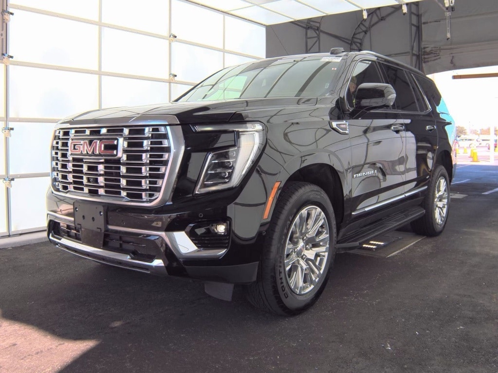 2025 GMC Yukon Denali Beautifully finished in Onyx Black with Jet Black Leather interior. EcoTec3 6.2L V8 4D Sport Utility 4WD 10-Speed Automatic with Overdrive **ONE OWNER**, **CLEAN CARFAX**, 4WD, 10 Speakers, 15" Diagonal Multi-Color Head-Up Display, 3.23 Rear Axle Ratio, 3rd row seats: split-bench, 4-Way Power Driver Lumbar Seat Adjuster, 4-Way Power Front Passenger Lumbar Seat Adjuster, 4-Wheel Disc Brakes, ABS brakes, Adaptive suspension, Air Conditioning, Alloy wheels, AM/FM radio: SiriusXM with 360L, Apple CarPlay/Android Auto, Audio memory, Auto High-beam Headlights, Auto-dimming door mirrors, Auto-dimming Rear-View mirror, Auto-leveling suspension, Automatic temperature control, AutoSense Hands-Free Power Liftgate, Bodyside moldings, Bose 10-Speaker Surround with CenterPoint, Brake assist, Bright Front and Rear Door Sill Plates, Bumpers: body-color, Compass, Delay-off headlights, Driver door bin, Driver vanity mirror, Dual Exhaust System, Dual front impact airbags, Dual front side impact airbags, Electronic Stability Control, Emergency communication system: OnStar and GMC connected services capable, Exterior Parking Camera Rear, Four wheel independent suspension, Front anti-roll bar, Front Bucket Seats, Front Center Armrest, Front dual zone A/C, Front fog lights, Front reading lights, Fully automatic headlights, Galvano Bodyside Moldings, Garage door transmitter, Heads-Up Display, Heated door mirrors, Heated Driver and Front Passenger Seats, Heated front seats, Heated rear seats, Heated steering wheel, Illuminated entry, License Plate Front Mounting Package, Low tire pressure warning, Magnetic Ride Control Suspension, Memory seat, Navigation system: GMC Connected Navigation, Occupant sensing airbag, Outside temperature display, Overhead airbag, Overhead console, Panic alarm, Passenger door bin, Passenger vanity mirror, Perforated Heather and Ventilated Driver and Front Passenger Seats, Perforated Leather Seating Surfaces, Power door mirrors, Power driver seat, Power Liftgate, Power passenger seat, Power Release 2nd Row Bucket Seats, Power steering, Power Tilt and Telescopic Steering Column, Power windows, Preferred Equipment Group 5SA, Radio: 16.8" Diagonal Premium GMC Infotainment System, Rain sensing wipers, Rear air conditioning, Rear anti-roll bar, Rear reading lights, Rear window defroster, Rear window wiper, Remote keyless entry, Security system, SiriusXM with 360L, Speed control, Speed-sensing steering, Split folding rear seat, Spoiler, Steering wheel memory, Steering wheel mounted audio controls, Tachometer, Telescoping steering wheel, Tilt steering wheel, Traction control, Trip computer, Turn signal indicator mirrors, Variably intermittent wipers, Ventilated front seats, Voltmeter, Wheels: 20" x 9" 6-Spoke Polished Aluminum, 4WD. CARFAX One-Owner. Clean CARFAX. Priced below KBB Fair Purchase Price!