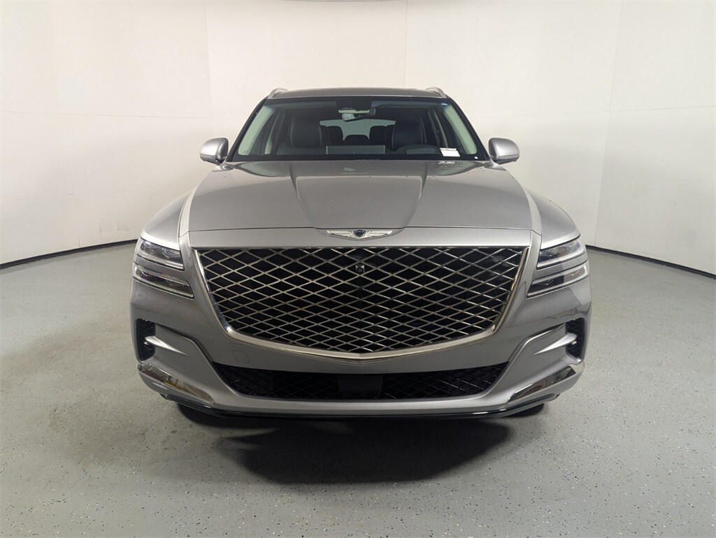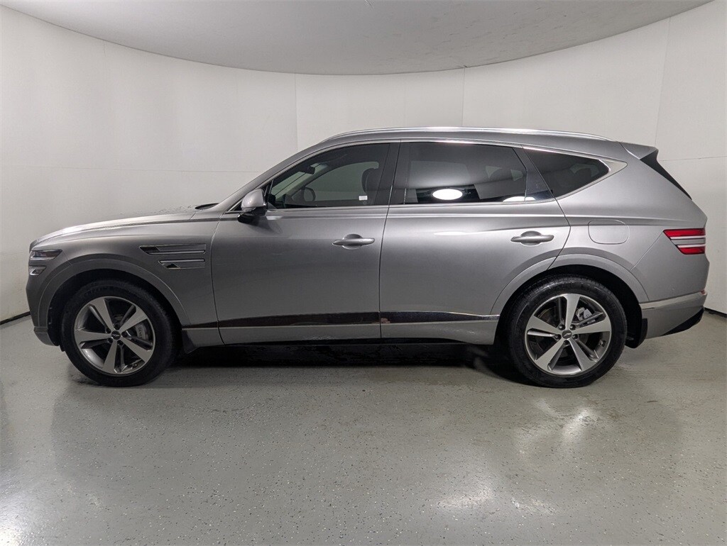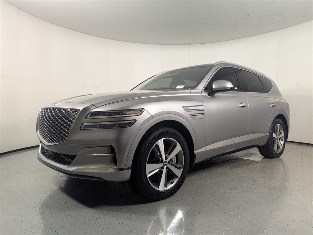 Features: Cargo Package (First Aid Kit and Seatback Cargo Mat), Option Group 01, 21 Speakers, 3.909 Axle Ratio, 3rd row seats: split-bench, 4-Wheel Disc Brakes, ABS brakes, Adaptive suspension, Air Conditioning, Alloy wheels, AM/FM radio: SiriusXM, Android Auto & Apple CarPlay, Anti-whiplash front head restraints, Auto High-beam Headlights, Auto tilt-away steering wheel, Auto-dimming door mirrors, Auto-dimming Rear-View mirror, Automatic temperature control, Brake assist, Bumpers: body-color, Compass, Delay-off headlights, Driver door bin, Driver vanity mirror, Dual front impact airbags, Dual front side impact airbags, Electronic Stability Control, Emergency communication system: Genesis Connected Services, Exterior Parking Camera Rear, Four wheel independent suspension, Front anti-roll bar, Front Bucket Seats, Front Center Armrest, Front dual zone A/C, Front reading lights, Fully automatic headlights, Garage door transmitter: HomeLink, Genuine wood console insert, Genuine wood dashboard insert, Genuine wood door panel insert, Heads-Up Display, Heated & Ventilated Front Bucket Seats, Heated door mirrors, Heated front seats, Heated rear seats, Heated steering wheel, Illuminated entry, Knee airbag, Leather Seating Surfaces, Leather steering wheel, Low tire pressure warning, Memory seat, Navigation System, Occupant sensing airbag, Outside temperature display, Overhead airbag, Overhead console, Panic alarm, Passenger door bin, Passenger vanity mirror, Power door mirrors, Power driver seat, Power Liftgate, Power moonroof, Power passenger seat, Power steering, Power windows, Premium audio system: Lexicon, Radio data system, Radio: AM/FM/SiriusXM/HD Lexicon Prem Audio System, Rain sensing wipers, Rear air conditioning, Rear anti-roll bar, Rear Bumper Applique, Rear reading lights, Rear seat center armrest, Rear side impact airbag, Rear window defroster, Rear window wiper, Reclining 3rd row seat, Remote keyless entry, Security system, Speed control, Speed-sensing steering, Speed-Sensitive Wipers, Split folding rear seat, Spoiler, Steering wheel memory, Steering wheel mounted audio controls, Tachometer, Telescoping steering wheel, Tilt steering wheel, Traction control, Trip computer, Turn signal indicator mirrors, Variably intermittent wipers, Ventilated front seats, and Wheels: 20" x 8.5J Medium Metallic Gray Alloy.