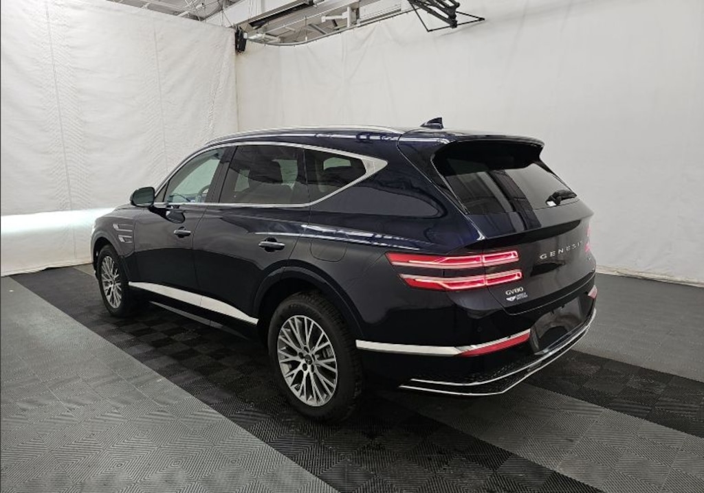 Features: 12 Speakers, 4-Wheel Disc Brakes, ABS brakes, Air Conditioning, Alloy wheels, AM/FM radio: SiriusXM, Anti-whiplash front head restraints, Auto High-beam Headlights, Auto tilt-away steering wheel, Auto-dimming door mirrors, Auto-dimming Rear-View mirror, Auto-leveling suspension, Automatic temperature control, Brake assist, Bumpers: body-color, Compass, Delay-off headlights, Driver door bin, Driver vanity mirror, Dual front impact airbags, Dual front side impact airbags, Electronic Stability Control, Emergency communication system: Genesis Connected Services, Exterior Parking Camera Rear, Four wheel independent suspension, Front anti-roll bar, Front Bucket Seats, Front Center Armrest, Front dual zone A/C, Front reading lights, Fully automatic headlights, Garage door transmitter: HomeLink, Heated door mirrors, Heated Front Bucket Seats, Heated front seats, Illuminated entry, Knee airbag, Leather steering wheel, Leatherette Seating Surfaces, Low tire pressure warning, Memory seat, Navigation System, Occupant sensing airbag, Outside temperature display, Overhead airbag, Overhead console, Panic alarm, Passenger door bin, Passenger vanity mirror, Power door mirrors, Power driver seat, Power Liftgate, Power passenger seat, Power steering, Power windows, Radio data system, Radio: AM/FM/SiriusXM/HD, Rain sensing wipers, Rear air conditioning, Rear anti-roll bar, Rear reading lights, Rear seat center armrest, Rear side impact airbag, Rear window defroster, Rear window wiper, Remote keyless entry, Security system, Speed control, Speed-sensing steering, Speed-Sensitive Wipers, Split folding rear seat, Spoiler, Steering wheel memory, Steering wheel mounted audio controls, Tachometer, Telescoping steering wheel, Tilt steering wheel, Traction control, Trip computer, Turn signal indicator mirrors, Variably intermittent wipers, and Wheels: 19" x 8.5J Medium Metallic Gray Alloy.