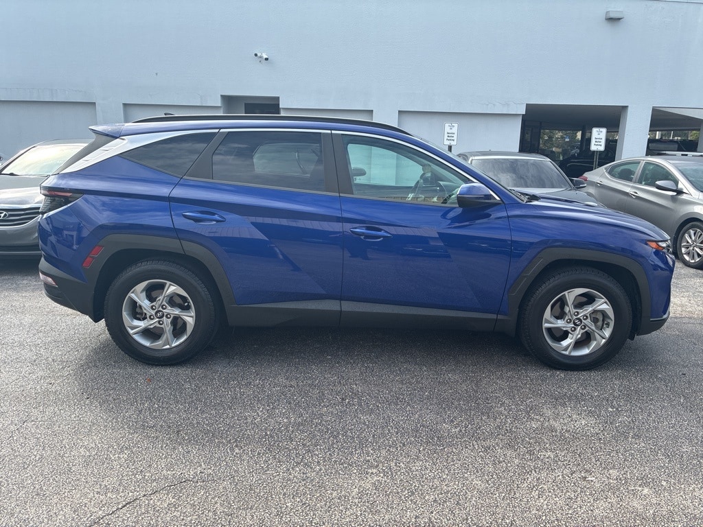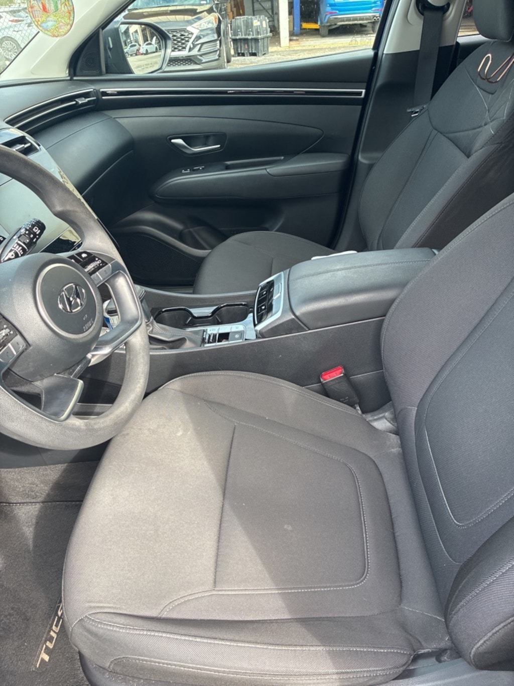 Features: Cargo Package (Cargo Net, Cargo Tray, and First Aid Kit), Option Group 01, Tucson SEL, 4D Sport Utility, 2.5L I4 DGI DOHC 16V LEV3-ULEV70 187hp, 8-Speed Automatic with SHIFTRONIC, FWD, Intense Blue, Black w/Stain & Odor Resistant Cloth Seat Trim, 3.648 Axle Ratio, 4-Wheel Disc Brakes, 6 Speakers, ABS brakes, Air Conditioning, Alloy wheels, AM/FM radio: SiriusXM, Apple CarPlay & Android Auto, Auto High-beam Headlights, Brake assist, Bumpers: body-color, Cargo Cover, Carpeted Floor Mats, Delay-off headlights, Driver door bin, Driver vanity mirror, Dual front impact airbags, Dual front side impact airbags, Electronic Stability Control, Emergency communication system: Blue Link Connected Car Service (3-year complimentary subscription), Four wheel independent suspension, Front and Rear Mudguards, Front anti-roll bar, Front Bucket Seats, Front Center Armrest, Front reading lights, Fully automatic headlights, Heated door mirrors, Heated Front Bucket Seats, Heated front seats, Illuminated entry, Low tire pressure warning, Occupant sensing airbag, Outside temperature display, Overhead airbag, Overhead console, Panic alarm, Passenger door bin, Passenger vanity mirror, Power door mirrors, Power driver seat, Power steering, Power windows, Radio data system, Radio: AM/FM/HD/SiriusXM Audio System, Rear anti-roll bar, Rear seat center armrest, Rear window defroster, Rear window wiper, Remote keyless entry, Roof rack: rails only, Security system, Speed control, Split folding rear seat, Spoiler, Stain & Odor Resistant Cloth Seat Trim, Steering wheel mounted audio controls, Tachometer, Telescoping steering wheel, Tilt steering wheel, Traction control, Trip computer, Turn signal indicator mirrors, Variably intermittent wipers, and Wheels: 17" x 7.0J" Alloy.