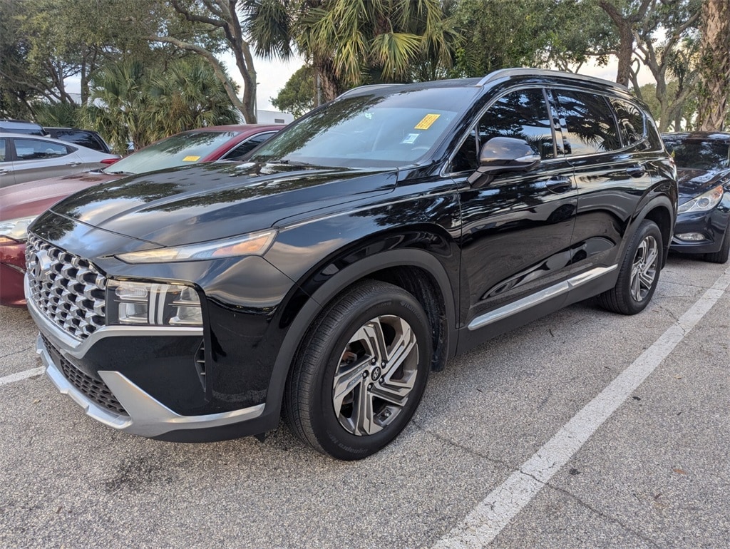 Features: Premium Package (12.3" LCD Multi-Information Display, 8-Way Power Passenger Seat, Acoustic-Laminated Front Side Windows, Auto-Dimming Rear-View Mirror, Blind-Spot View Monitor, Chrome Front & Rear Bumper Accents, Chrome Interior Accents, H-Tex Leatherette Seat Trim, harman/kardon® Audio System, LED Interior Lights, LED Taillights, Manual Rear Side Sunshades, Option Group 02, Panoramic Sunroof, Power Release 2nd Row Seats, Silver Front Grille, and Surround View Monitor), Santa Fe SEL, 4D Sport Utility, 2.5L I4, 8-Speed Automatic with SHIFTRONIC, FWD, Twilight Black, Black Artificial Leather, 18" x 7.5J Alloy Wheels, 4-Wheel Disc Brakes, 6 Speakers, ABS brakes, Air Conditioning, All Season Fitted Liners, Alloy wheels, AM/FM radio: SiriusXM, Apple CarPlay & Android Auto, Auto High-beam Headlights, Automatic temperature control, Axle Ratio: 3.798, Brake assist, Bumper Applique, Bumpers: body-color, Cargo Cover/Screen, Cargo Net, Cargo Tray, Delay-off headlights, Driver door bin, Driver vanity mirror, Dual front impact airbags, Dual front side impact airbags, Electronic Stability Control, Emergency communication system, Exterior Parking Camera Rear, First Aid Kit, Four wheel independent suspension, Front anti-roll bar, Front Bucket Seats, Front Center Armrest, Front dual zone A/C, Front reading lights, Fully automatic headlights, Heated door mirrors, Heated Front Bucket Seats, Heated front seats, Illuminated entry, Leather steering wheel, Low tire pressure warning, Mudguards, Navigation System, Occupant sensing airbag, Outside temperature display, Overhead airbag, Overhead console, Panic alarm, Passenger door bin, Passenger vanity mirror, Power door mirrors, Power driver seat, Power Liftgate, Power steering, Power windows, Radio: AM/FM Display Audio, Rear anti-roll bar, Rear seat center armrest, Rear window defroster, Rear window wiper, Remote keyless entry, Security system, Speed control, Speed-sensing steering, Split folding rear seat, Spoiler, Stain-Resistant Cloth Seat Trim, Steering wheel mounted audio controls, Tachometer, Telescoping steering wheel, Tilt steering wheel, Traction control, Trip computer, Turn signal indicator mirrors, and Variably intermittent wipers.