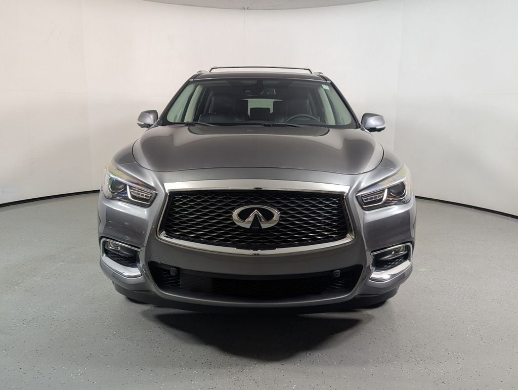 2018 INFINITI QX60 Base Beautifully finished in Graphite Shadow with Graphite Leather interior. 3.5L V6 4D Sport Utility FWD CVT 120V Power Outlet, 2-Way Driver's Seat Power Lumbar Support, 2nd & 3rd Row Moonroof w/Power Rear Sunshade, 3rd row seats: bench, 4-Wheel Disc Brakes, 5.25 Axle Ratio, 6 Speakers, 8" Dual Color Monitors, ABS brakes, Activation Disclaimer, Active Trace Control, Advanced Climate Control System, Air Conditioning, Alloy wheels, AM/FM radio: SiriusXM, AM/FM/CD/MP3 Audio System, Around View Monitor w/Moving Object Detection, Auto Side Dimming Mirrors, Auto-dimming Rear-View mirror, Automatic temperature control, Back-Up Collision Intervention (BCI), Blind Spot Intervention System (BSI), Blind Spot Warning System (BSW), Bodyside moldings, Bose Cabin Surround Sound System, Brake assist, Bumpers: body-color, Carpeted Floor Mats (4-Piece Set), CD player, Climate-Controlled Front Seats, Cross Bars, Cross Bars (K11), Delay-off headlights, Deluxe Technology Package, Distance Control Assist, Driver door bin, Driver vanity mirror, Dual front impact airbags, Dual front side impact airbags, Dual Occupant Memory System, ECO Pedal, Electronic Stability Control, Enhanced Intelligent Key Memory, Entry & Exit Assist, Forward Emergency Braking, Four wheel independent suspension, Front & Rear Sonar Sensors, Front anti-roll bar, Front Bucket Seats, Front Center Armrest w/Storage, Front dual zone A/C, Front fog lights, Front Pre-Crash Seatbelts, Front reading lights, Fully automatic headlights, Garage door transmitter, Heated 2nd-Row Seats, Heated door mirrors, Heated Front Seats, Heated front seats, Heated Steering Wheel, High Beam Assist, High intensity discharge headlights: Bi-Xenon, Illuminated entry, Illuminated Kick Plates, Illuminated Kick Plates (IKP), INFINITI Navigation, Intelligent Cruise Control, Lane Departure Prevention (LDP), Lane Departure Warning System, Leather Shift Knob, Leather steering wheel, Leather-Appointed Seats, Literature Kit, Low tire pressure warning, Maple Interior Accents, Motion Activated Liftgate, Occupant sensing airbag, Outside Mirrors w/Reverse Tilt-Down Feature, Outside temperature display, Overhead airbag, Overhead console, Panic alarm, Passenger door bin, Passenger vanity mirror, Power door mirrors, Power driver seat, Power Liftgate, Power moonroof, Power passenger seat, Power Return 3rd Row Seat Back, Power steering, Power windows, Predictive Forward Collision Warning (PFCW), Premium Package, Premium Plus Package, Radio data system, Radio: AM/FM/CD/DVD w/MP3 Playback Capability, Rain-Sensing Front Windshield Wipers, Rear air conditioning, Rear anti-roll bar, Rear Bumper Protector, Rear Bumper Protector (P11), Rear reading lights, Rear seat center armrest, Rear window defroster, Rear window wiper, Reclining 3rd row seat, Remote Engine Start, Remote keyless entry, Roof Rails, Security system, Single In-Dash CD/DVD Player, Single USB Port, Speed control, Speed-sensing steering, Speed-Sensitive Wipers, Splash Guards (Color-Matched Set of 4), Split folding rear seat, Spoiler, Steering wheel mounted audio controls, Tachometer, Telescoping steering wheel, Theater Package, Tilt steering wheel, Traction control, Trip computer, Turn signal indicator mirrors, Variably intermittent wipers, Voice Recognition For Navigation, Wheels: 18" Triple 5-Spoke Aluminum-Alloy, Wheels: 20" 15-Spoke Aluminum-Alloy, Wireless Headphones (2). Clean CARFAX. 20/27 City/Highway MPG