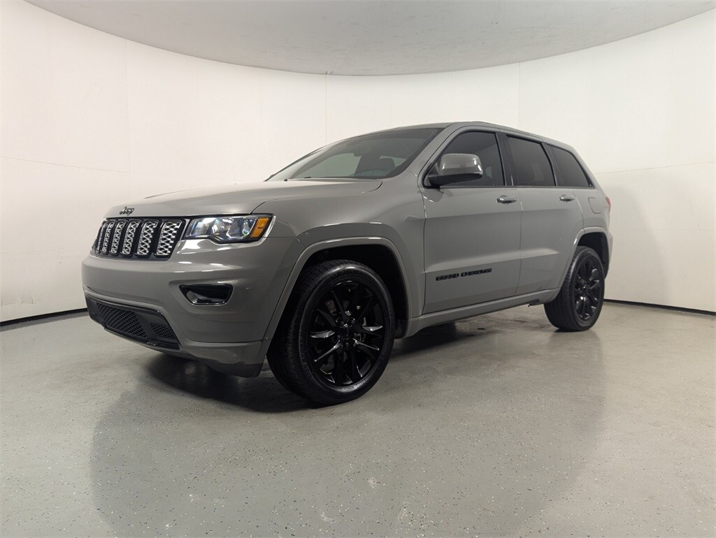 This Grand Cherokee is well equipped with Altitude Appearance Package (Altitude Grille, Black Roof Molding, Body Color Claddings, Body Color Fascia, Body Color Shark Fin Antenna, Bridgestone Brand Tires, Dark Day Light Opening Moldings, Dark Headlamp Bezel Finish, Dark Lens Taillamps, Delete Laredo Badge, Front Accent/Body Color Fascia, Gloss Black Jeep Badging, Gloss Black Rear Fascia Applique, Rear Accent/Body Color Fascia, Rear Fascia Black Molded in Color Step Pad, Single Exhaust w/Bright Tip, and Wheels: 20" x 8.0" Gloss Black Aluminum), Quick Order Package 2BM Laredo X (1-Year SiriusXM Guardian Trial, 4G LTE Wi-Fi Hot Spot, 5-Year SiriusXM Traffic Service, 5-Year SiriusXM Travel Link Service, 8.4" Touchscreen Display, Apple CarPlay, Black Suede Seats w/Black Stitching, Google Android Auto, GPS Antenna Input, GPS Navigation, HD Radio, Heated Front Seats, Heated Steering Wheel, Integrated Voice Command w/Bluetooth, Power Liftgate, Radio: Uconnect 4C Nav w/8.4" Display, Remote Start System, Security Alarm, SiriusXM Satellite Radio, SiriusXM Traffic Plus, SiriusXM Travel Link, Steering Wheel Mounted Audio Controls, and Universal Garage Door Opener), 3.27 Rear Axle Ratio, 4-Wheel Disc Brakes, 6 Speakers, ABS brakes, Air Conditioning, Alloy wheels, AM/FM radio: SiriusXM, Anti-whiplash front head restraints, Apple CarPlay/Android Auto, Automatic temperature control, Brake assist, Bumpers: body-color, Cloth Bucket Seats, Compass, Delay-off headlights, Driver door bin, Driver vanity mirror, Dual front impact airbags, Dual front side impact airbags, Eco Suspension I, Electronic Stability Control, Four wheel independent suspension, Front anti-roll bar, Front Bucket Seats, Front Center Armrest w/Storage, Front dual zone A/C, Front fog lights, Front reading lights, Fully automatic headlights, Heated door mirrors, Illuminated entry, Knee airbag, Leather Shift Knob, Low tire pressure warning, Occupant sensing airbag, Outside temperature display, Overhead airbag, Overhead console, Panic alarm, ParkView Rear Back-Up Camera, Passenger door bin, Passenger vanity mirror, Power door mirrors, Power driver seat, Power steering, Power windows, Radio data system, Radio: Uconnect 4 w/7" Display, Rear anti-roll bar, Rear reading lights, Rear seat center armrest, Rear window defroster, Rear window wiper, Remote keyless entry, Roof rack: rails only, Speed control, Speed-sensing steering, Speed-Sensitive Wipers, Split folding rear seat, Spoiler, Steering wheel mounted audio controls, Tachometer, Telescoping steering wheel, Tilt steering wheel, Traction control, Trip computer, Variably intermittent wipers, and Wheels: 18" x 8.0" Fine Silver Aluminum.
