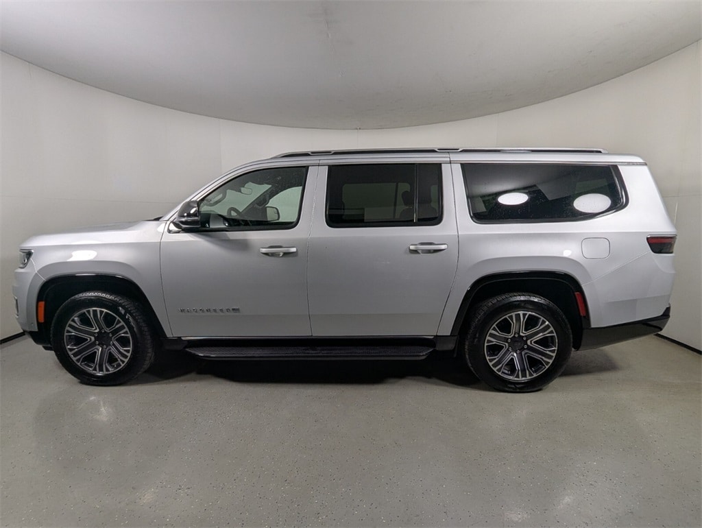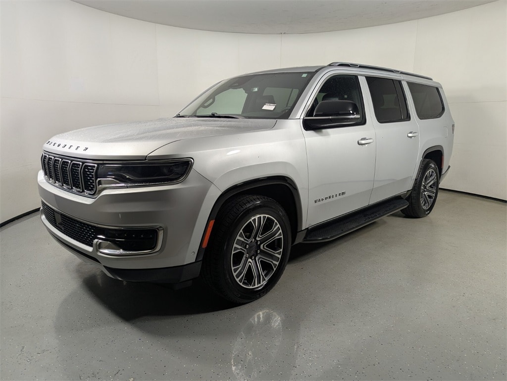 Features: Quick Order Package 25J, 10 Speakers, 3.55 Rear Axle Ratio, 3rd row seats: bench, 4-Wheel Disc Brakes, ABS brakes, Adjustable pedals, Air Conditioning, Alloy wheels, AM/FM radio: SiriusXM with 360L, Anti-whiplash front head restraints, Apple CarPlay/Android Auto, Audio memory, Auto-dimming door mirrors, Auto-dimming Rear-View mirror, Auto-leveling suspension, Automatic temperature control, Brake assist, Bumpers: body-color, Compass, Delay-off headlights, Driver door bin, Driver vanity mirror, Driver's Seat Mounted Armrest, Dual front impact airbags, Dual front side impact airbags, Electronic Stability Control, Emergency communication system: Wagoneer Connect, Exterior Parking Camera Rear, Four wheel independent suspension, Front anti-roll bar, Front Bucket Seats, Front Center Armrest w/Storage, Front dual zone A/C, Front fog lights, Front reading lights, Fully automatic headlights, Garage door transmitter, Genuine wood console insert, Genuine wood dashboard insert, Genuine wood door panel insert, Heated door mirrors, Heated front seats, Heated steering wheel, Illuminated entry, Knee airbag, Leather Trimmed Bucket Seats, Low tire pressure warning, Memory seat, Navigation System, Normal Duty Suspension, Occupant sensing airbag, Outside temperature display, Overhead airbag, Overhead console, Panic alarm, Passenger door bin, Passenger seat mounted armrest, Passenger vanity mirror, Pedal memory, Power adjustable front head restraints, Power door mirrors, Power driver seat, Power Liftgate, Power passenger seat, Power steering, Power windows, Radio data system, Radio: Uconnect 5 Nav w/10.1" Display, Rain sensing wipers, Rear air conditioning, Rear anti-roll bar, Rear reading lights, Rear seat center armrest, Rear window defroster, Rear window wiper, Reclining 3rd row seat, Remote keyless entry, Security system, Speed control, Speed-sensing steering, Speed-Sensitive Wipers, Split folding rear seat, Steering wheel memory, Steering wheel mounted audio controls, Tachometer, Telescoping steering wheel, Tilt steering wheel, Traction control, Trip computer, Turn signal indicator mirrors, Variably intermittent wipers, Ventilated front seats, Voltmeter, and Wheels: 20" x 9.0" Premium 2 Aluminum.