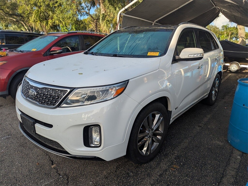 2015 Kia Sorento Limited V6 Beautifully finished in Snow White Pearl with Black Leather interior. 3.3L V6 DGI Dual CVVT 4D Sport Utility AWD 6-Speed Automatic with Sportmatic AWD, 10 Speakers, 3.041 Axle Ratio, 3rd row seats: split-bench, 4-Wheel Disc Brakes, ABS brakes, Air Conditioning, Alloy wheels, AM/FM radio: SiriusXM, Anti-whiplash front head restraints, Auto-dimming Rear-View mirror, Automatic temperature control, Black Cross Bars for Panoramic Roof, Brake assist, Bumpers: body-color, Cargo Cover, Cargo Net, Cargo Tray (7 Seat), CD player, Chrome wheels, Compass, Delay-off headlights, Driver door bin, Driver vanity mirror, Dual front impact airbags, Dual front side impact airbags, Electronic Stability Control, Exterior Parking Camera Rear, Four wheel independent suspension, Front anti-roll bar, Front Bucket Seats, Front Center Armrest, Front dual zone A/C, Front fog lights, Front reading lights, Fully automatic headlights, Garage door transmitter: HomeLink, Heated & Ventilated Front Bucket Seats, Heated door mirrors, Heated front seats, Heated rear seats, Heated steering wheel, High-Intensity Discharge Headlights, Illuminated entry, Leather steering wheel, Low tire pressure warning, Memory seat, Navigation System, Occupant sensing airbag, Outside temperature display, Overhead airbag, Overhead console, Panic alarm, Passenger door bin, Passenger vanity mirror, Power door mirrors, Power driver seat, Power Liftgate, Power moonroof, Power passenger seat, Power steering, Power windows, Premium Black Nappa Leather Seat Trim, Premium Nappa Leather Seat Trim, Radio: AM/FM/CD/MP3 w/Navigation System, Rear air conditioning, Rear anti-roll bar, Rear Parking Sensors, Rear seat center armrest, Rear window defroster, Rear window wiper, Remote keyless entry, Roof rack: rails only, Speed control, Speed-sensing steering, Split folding rear seat, Spoiler, Steering wheel mounted audio controls, Tachometer, Telescoping steering wheel, Tilt steering wheel, Traction control, Trip computer, Turn signal indicator mirrors, Variably intermittent wipers, Ventilated front seats, Wheel Locks, Wheels: 19" x 7.5 Chrome Finish Alloy, AWD. Priced below KBB Fair Purchase Price!
