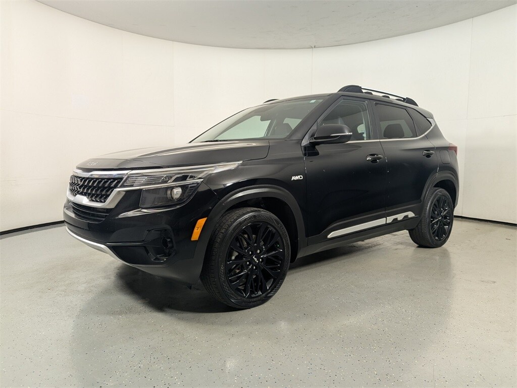2023 Kia Seltos Nightfall Beautifully finished in Cherry Black with Black Cloth interior. I4 4D Sport Utility AWD 7-Speed Automatic 4-Wheel Disc Brakes, 4.643 Axle Ratio, 6 Speakers, ABS brakes, Air Conditioning, Alloy wheels, AM/FM radio: SiriusXM, Apple CarPlay & Android Auto, Auto High-beam Headlights, Automatic temperature control, Brake assist, Bumpers: body-color, Carpet Floor Mats, Cloth & Sofino Premium Leatherette Seat Trim, Delay-off headlights, Driver door bin, Driver vanity mirror, Dual front impact airbags, Dual front side impact airbags, Electronic Stability Control, Emergency communication system: 911 Connect, Exterior Parking Camera Rear, Four wheel independent suspension, Front anti-roll bar, Front Bucket Seats, Front Center Armrest, Front fog lights, Front reading lights, Fully automatic headlights, Heated door mirrors, Heated Front Bucket Seats, Heated front seats, Illuminated entry, Leather Shift Knob, Low tire pressure warning, Navigation System, Occupant sensing airbag, Outside temperature display, Overhead airbag, Overhead console, Panic alarm, Passenger door bin, Passenger vanity mirror, Power door mirrors, Power steering, Power windows, Radio: AM/FM/MP3 Display Audio w/Navigation, Rear seat center armrest, Rear window defroster, Rear window wiper, Remote keyless entry, Security system, Speed control, Speed-sensing steering, Split folding rear seat, Spoiler, Steering wheel mounted audio controls, Tachometer, Telescoping steering wheel, Tilt steering wheel, Traction control, Trip computer, Turn signal indicator mirrors, Variably intermittent wipers, Wheels: 18" Alloy w/Matte Black Finish. CARFAX One-Owner. Priced below KBB Fair Purchase Price! 25/30 City/Highway MPG