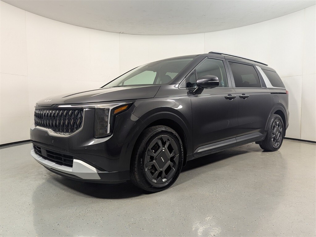2025 Kia Carnival Hybrid EX Beautifully finished in Panthera Metal with Taupe/Off-Black Artificial Leather interior. 1.6L I4 DGI Hybrid Turbocharged DOHC 16V LEV3-SULEV30 4D Passenger Van FWD 6-Speed Automatic 1.6L I4 DGI Hybrid Turbocharged DOHC 16V LEV3-SULEV30, 3rd row seats: split-bench, 4-Wheel Disc Brakes, 8 Speakers, ABS brakes, Air Conditioning, Alloy wheels, AM/FM radio: SiriusXM, Apple CarPlay & Android Auto, Artificial Leather Seat Trim, Auto High-beam Headlights, Automatic temperature control, Brake assist, Bumpers: body-color, Cargo Mat, Carpeted Floor Mats (8-Passenger), Compass, Delay-off headlights, Driver door bin, Driver vanity mirror, Dual front impact airbags, Dual front side impact airbags, EC Mirror w/HomeLink, Electronic Stability Control, Emergency communication system, Exterior Parking Camera Rear, Four wheel independent suspension, Front anti-roll bar, Front Bucket Seats, Front Center Armrest, Front dual zone A/C, Front reading lights, Fully automatic headlights, Heated door mirrors, Heated Front Bucket Seats, Heated front seats, Illuminated entry, Knee airbag, Leather Shift Knob, Leather steering wheel, Low tire pressure warning, Memory seat, Mud Guards, Navigation system: AVN 5.0 Navigation System, Occupant sensing airbag, Outside temperature display, Overhead airbag, Overhead console, Panic alarm, Passenger door bin, Passenger vanity mirror, Power door mirrors, Power driver seat, Power Liftgate, Power passenger seat, Power steering, Power windows, Radio: AVN 5.0 Navigation System w/SiriusXM, Rear air conditioning, Rear anti-roll bar, Rear reading lights, Rear window defroster, Rear window wiper, Reclining 3rd row seat, Remote keyless entry, Security system, Speed control, Speed-sensing steering, Split folding rear seat, Spoiler, Steering wheel mounted audio controls, Tachometer, Telescoping steering wheel, Tilt steering wheel, Traction control, Trailer Prewire Harness, Trip computer, Turn signal indicator mirrors, Variably intermittent wipers, Wheels: 7.5J x 19" Alloy, 1.6L I4 DGI Hybrid Turbocharged DOHC 16V LEV3-SULEV30. CARFAX One-Owner. Clean CARFAX. Priced below KBB Fair Purchase Price! 34/31 City/Highway MPG