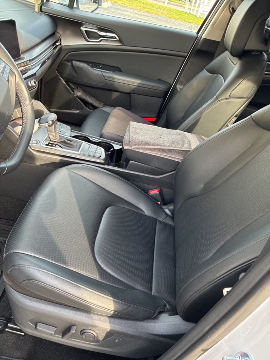 Features: 18" x 7.5J Alloy Wheels, 4-Wheel Disc Brakes, 6 Speakers, ABS brakes, Air Conditioning, Alloy wheels, Auto High-beam Headlights, Automatic temperature control, Brake assist, Bumpers: body-color, Carpeted Floor Mats, Delay-off headlights, Driver door bin, Driver vanity mirror, Dual front impact airbags, Dual front side impact airbags, Electronic Stability Control, Emergency communication system: Kia Connect (includes 1 year free trial), Four wheel independent suspension, Front anti-roll bar, Front Bucket Seats, Front Center Armrest, Front dual zone A/C, Fully automatic headlights, Heated door mirrors, Heated Front Bucket Seats, Heated front seats, Illuminated entry, Leather Shift Knob, Leather steering wheel, Low tire pressure warning, Occupant sensing airbag, Outside temperature display, Overhead airbag, Overhead console, Panic alarm, Passenger door bin, Passenger vanity mirror, Power door mirrors, Power driver seat, Power Liftgate, Power steering, Power windows, Radio: AM/FM/HD Audio System, Rain sensing wipers, Rear anti-roll bar, Rear seat center armrest, Rear side impact airbag, Rear window defroster, Rear window wiper, Remote keyless entry, Security system, Speed control, Speed-sensing steering, Split folding rear seat, Spoiler, Steering wheel mounted audio controls, SynTex Leatherette Seat Trim, Tachometer, Telescoping steering wheel, Tilt steering wheel, Traction control, Trip computer, Turn signal indicator mirrors, and Variably intermittent wipers.
