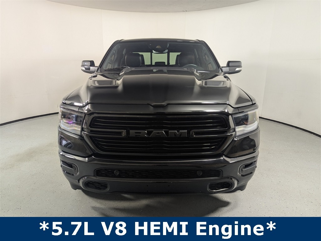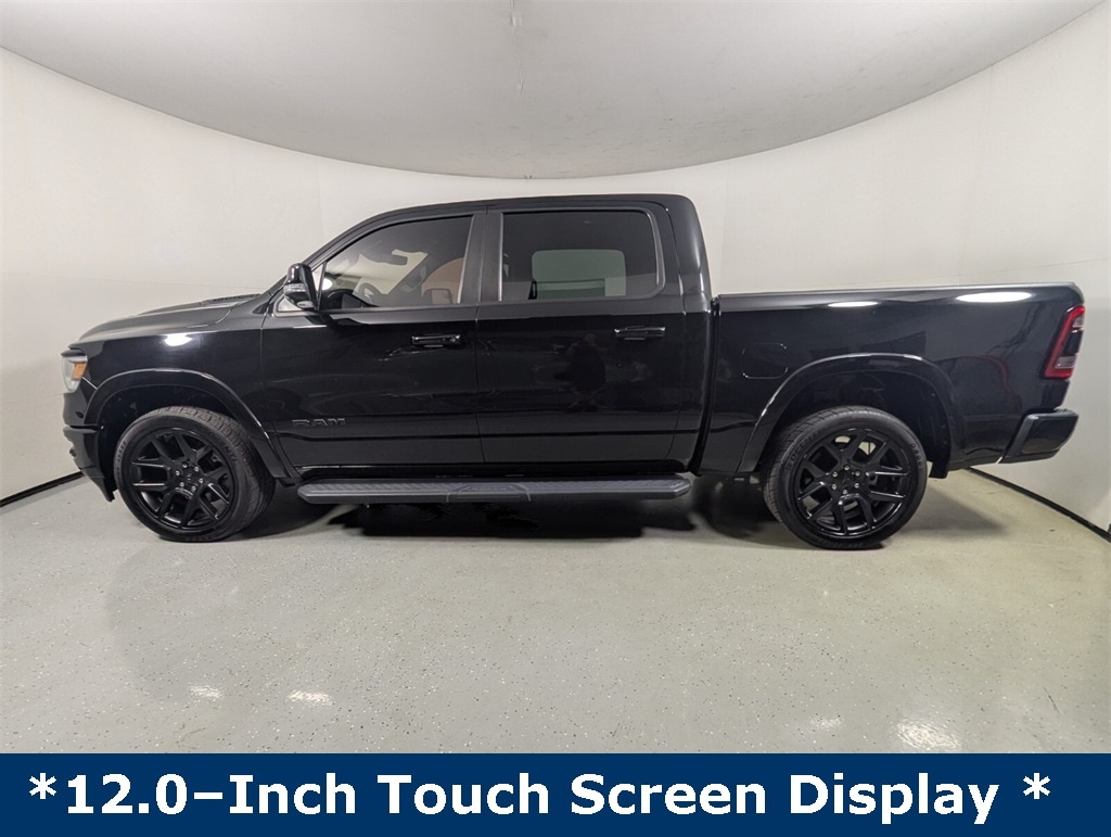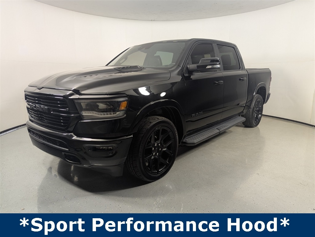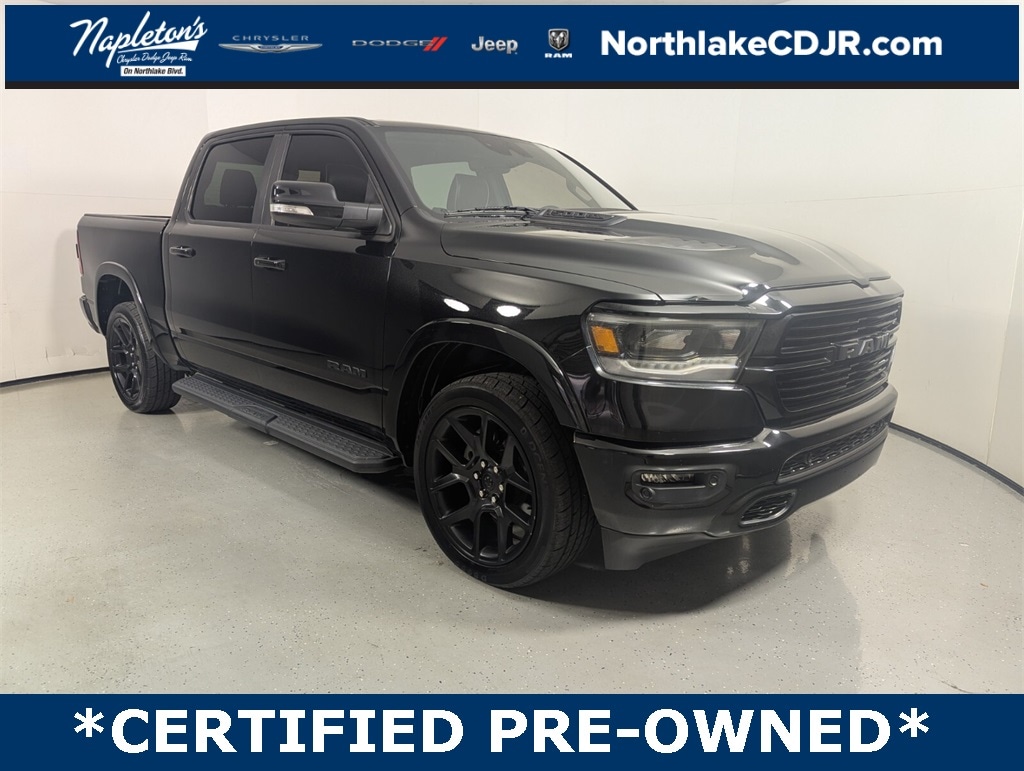 This 1500 is well equipped with Laramie Level B Equipment Group (DISC) (harman/kardon 19 Speaker Premium Sound, Heated Second Row Seats, ParkSense Front/Rear Park Assist w/Stop, Remote Tailgate Release, 4G LTE Wi-Fi Hot Spot, 8.4" Touchscreen Display, All R1 High Radios, All Radio Equipped Vehicles, Apple CarPlay, Auto High Beam Headlamp Control, Connected Travel & Traffic Services, Connectivity - US/Canada, Disassociated Touchscreen Display, Foam Bottle Insert (Door Trim Panel), For Details, Visit DriveUconnect.com, For More Info, Call 800-643-2112, Global Telematics Box Module (TBM), Google Android Auto, GPS Antenna Input, GPS Navigation, HD Radio, Integrated Center Stack Radio, Integrated Voice Command w/Bluetooth, Radio: Uconnect 5 Nav w/8.4" Display, Rain Sensitive Windshield Wipers, Rear 60/40 Folding Split Recline Seat, Rear Underseat Compartment Storage, SiriusXM Radio Service, SiriusXM w/360L, and USB Host Flip), Night Edition (Heated Front Seats, #1 Seat Foam Cushion, 3 Rear Seat Head Restraints, 4 Way Front Headrests, Accent Color Premium Power Mirrors, Auto-Dimming Exterior Driver Mirror, Black Exterior Truck Badging, Black Headlamp Bezels, Black Interior Accents, Black Painted Exterior Mirrors Caps, Body Color Door Handles, Body Color Front Bumper, Body Color Rear Bumper w/Step Pads, Bucket Seats, Convex Wide-Angle Mirror Insert, Delete LED Lamp - Floor Console Bin, Driver Seat Memory, Dual Exhaust w/Black Tips, Exterior Mirrors Courtesy Lamps, Exterior Mirrors w/Heating Element, Exterior Mirrors w/Memory, Exterior Mirrors w/Supplemental Signals, Front Seat Back Map Pockets, Full Length Upgraded Floor Console, Grille Surround 3 Black Texture 2 Black, Heated Steering Wheel, Leather Trimmed Bucket Seats, Mopar Black Tubular Side Steps, Power 2-Way Driver Lumbar Adjust, Power 2-Way Passenger Lumbar Adjust, Power 8-Way Driver & Passenger Seats, Power-Folding Mirrors, Rear 60/40 Folding Seat, Sport Performance Hood, Twill Film Appliques, and Ventilated Front Seats), Quick Order Package 25H Laramie, 1500 Laramie, FCA US LLC Certified Pre-Owned Certified, HEMI 5.7L V8 Multi Displacement VVT, 12" Touchscreen Display, ParkView Rear Back-Up Camera, 10 Speakers, 2nd Row In Floor Storage Bins, 3.21 Rear Axle Ratio, 3.92 Rear Axle Ratio, 4-Wheel Disc Brakes, 48V Belt Starter Generator, ABS brakes, Adjustable pedals, Air Conditioning, Alloy wheels, AM/FM radio: SiriusXM, Anti-Spin Differential Rear Axle, Apple CarPlay/Android Auto, Audio memory, Auto-dimming door mirrors, Auto-dimming Rear-View mirror, Automatic temperature control, Brake assist, Bumpers: chrome, Chrome Exterior Mirrors, Compass, Delay-off headlights, Driver door bin, Driver vanity mirror, Dual front impact airbags, Dual front side impact ai
