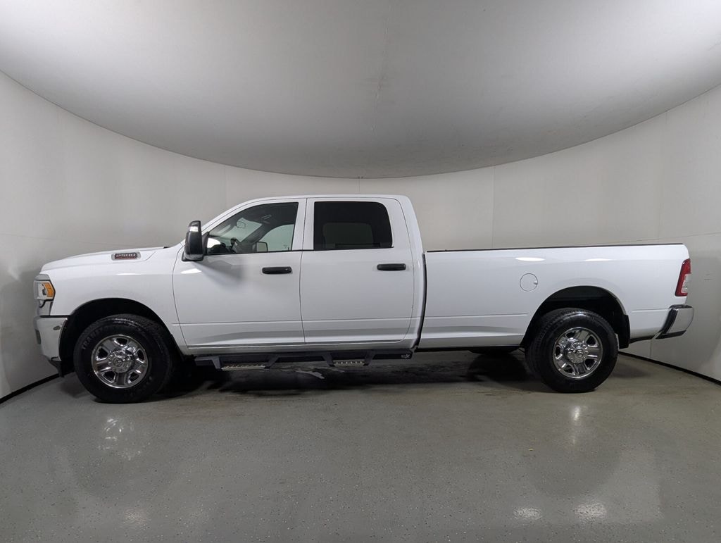 The exterior of this 2023 Ram 2500 Tradesman is finished in a sleek White color, complemented by 18-inch steel chrome-clad wheels and a MOPAR spray-in bedliner for added durability. Inside, the heavy-duty vinyl 40/20/40 split bench seat provides comfortable seating for up to six passengers, while the 4-way manual-adjust driver's seat ensures a personalized driving experience.